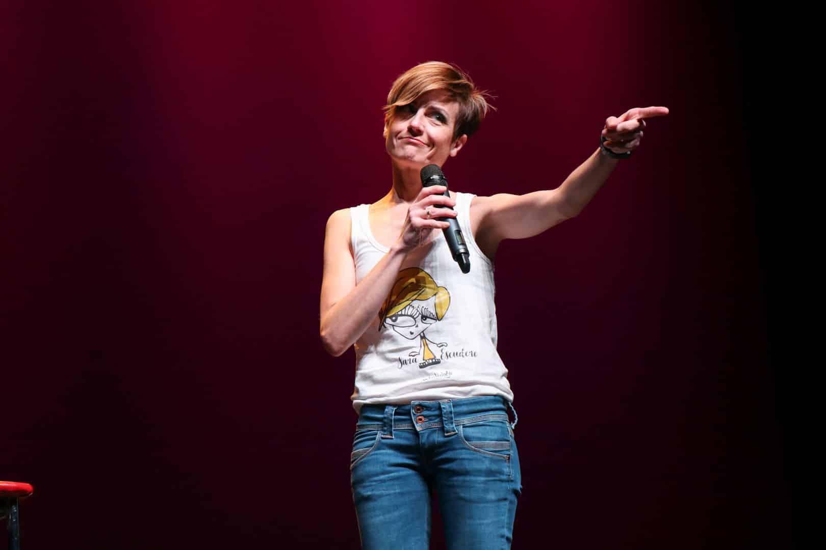 Además de conducir eventos, Sara pone su capacidad comunicativa y talento cómico al servicio de las empresas como conferenciante y creadora de monólogos personalizados.